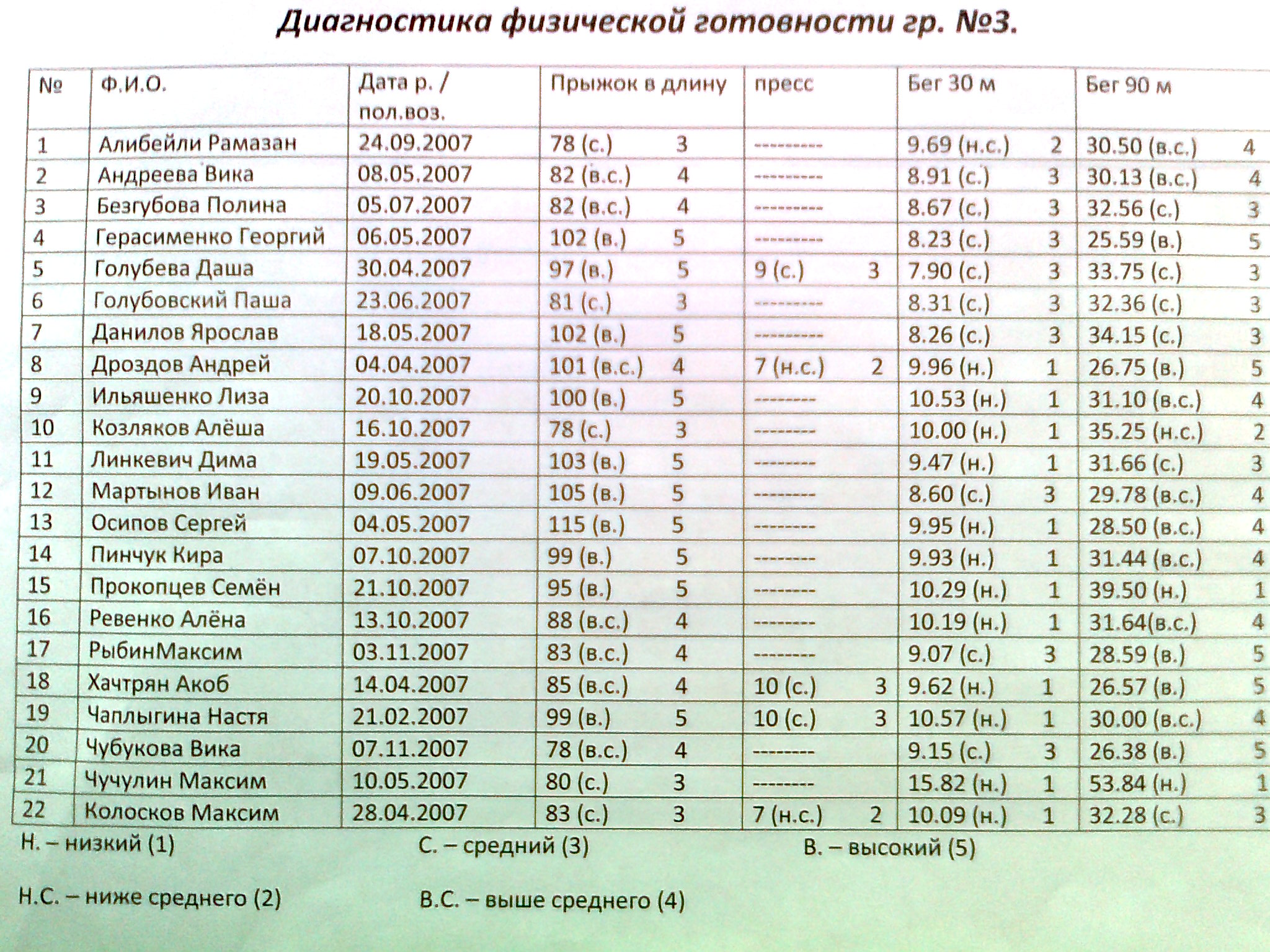 Физическая успеваемость, май 2012