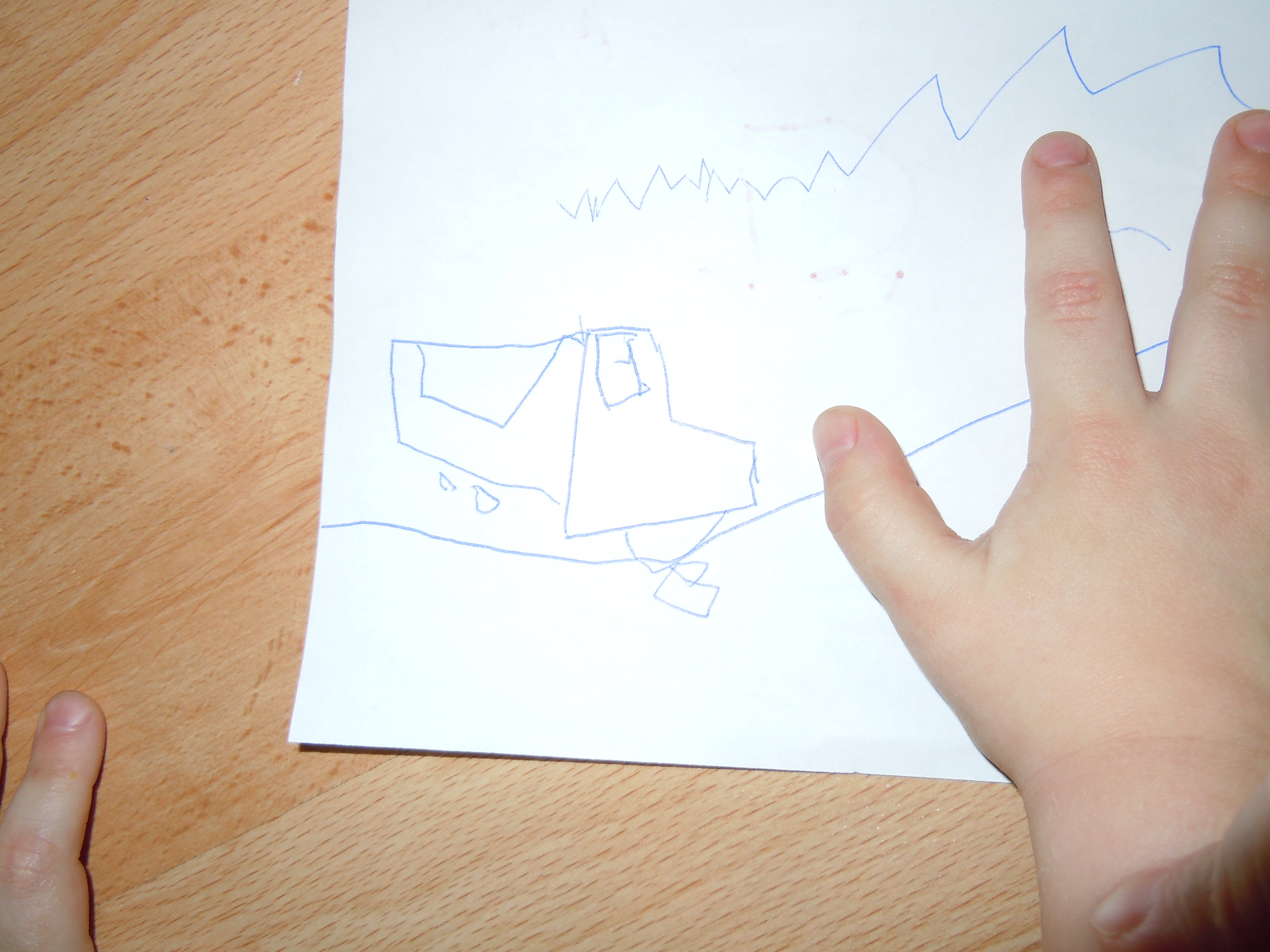 Самолет с крыльями и колесами, сам рисовал.