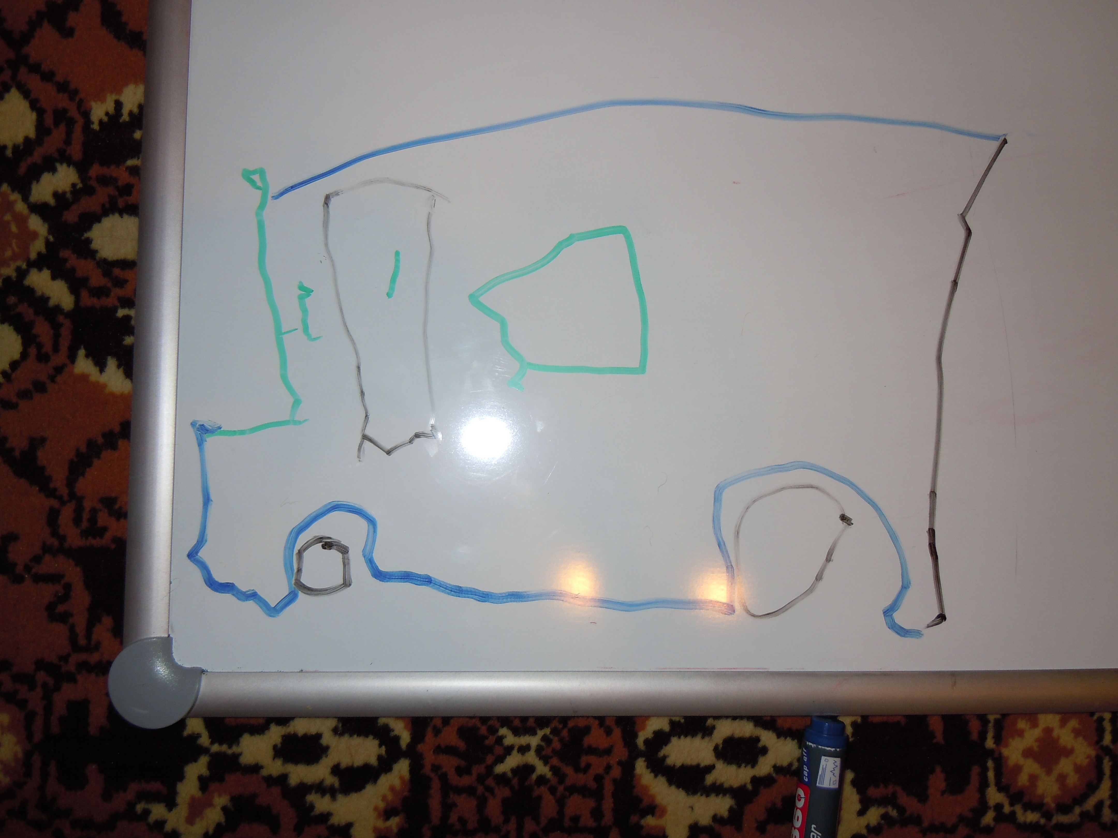 Самолет с крыльями и колесами, сам рисовал.
